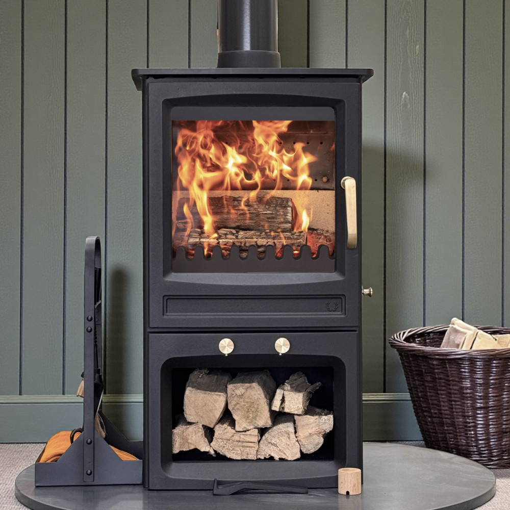 A reliable, stylish and efficient fully cast iron stove with a grate and ash pan.